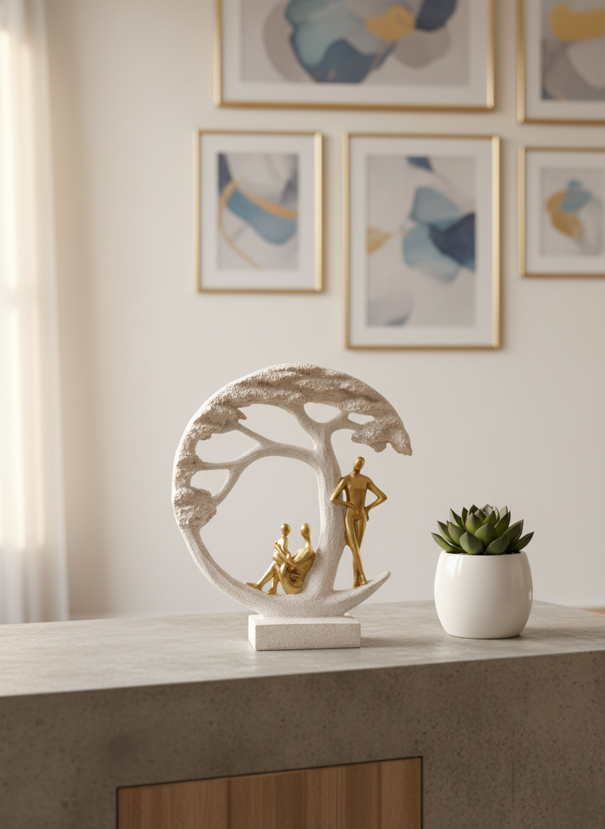 Elegant Design: Beautiful modern art showpiece featuring a romantic couple under a tree, symbolizing love, peace, and togetherness.